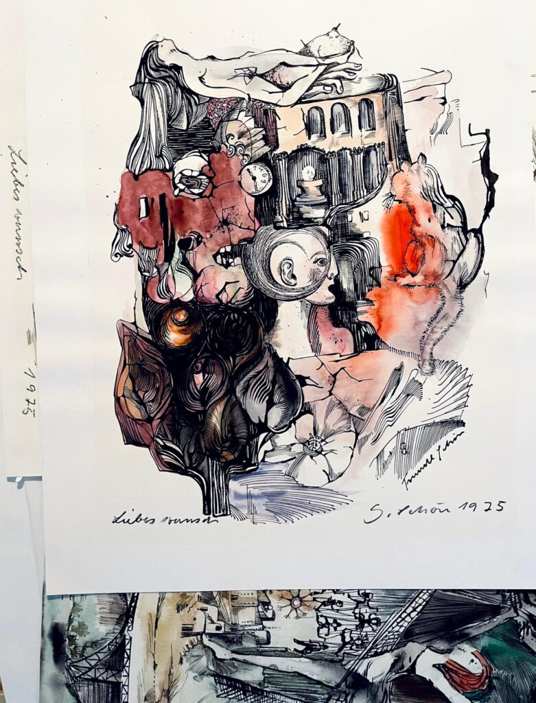 Eine Serie, die mich bei der Sichtung sehr berührt hat, ist die Tuscheserie „Liebeswunsch“ (untere Bildreihe letztes Foto). Sie beschäftigt sich mit inneren Themen und Verletzungen, die bei meiner Großmutter auf einen biografischen Hintergrund hinweisen.